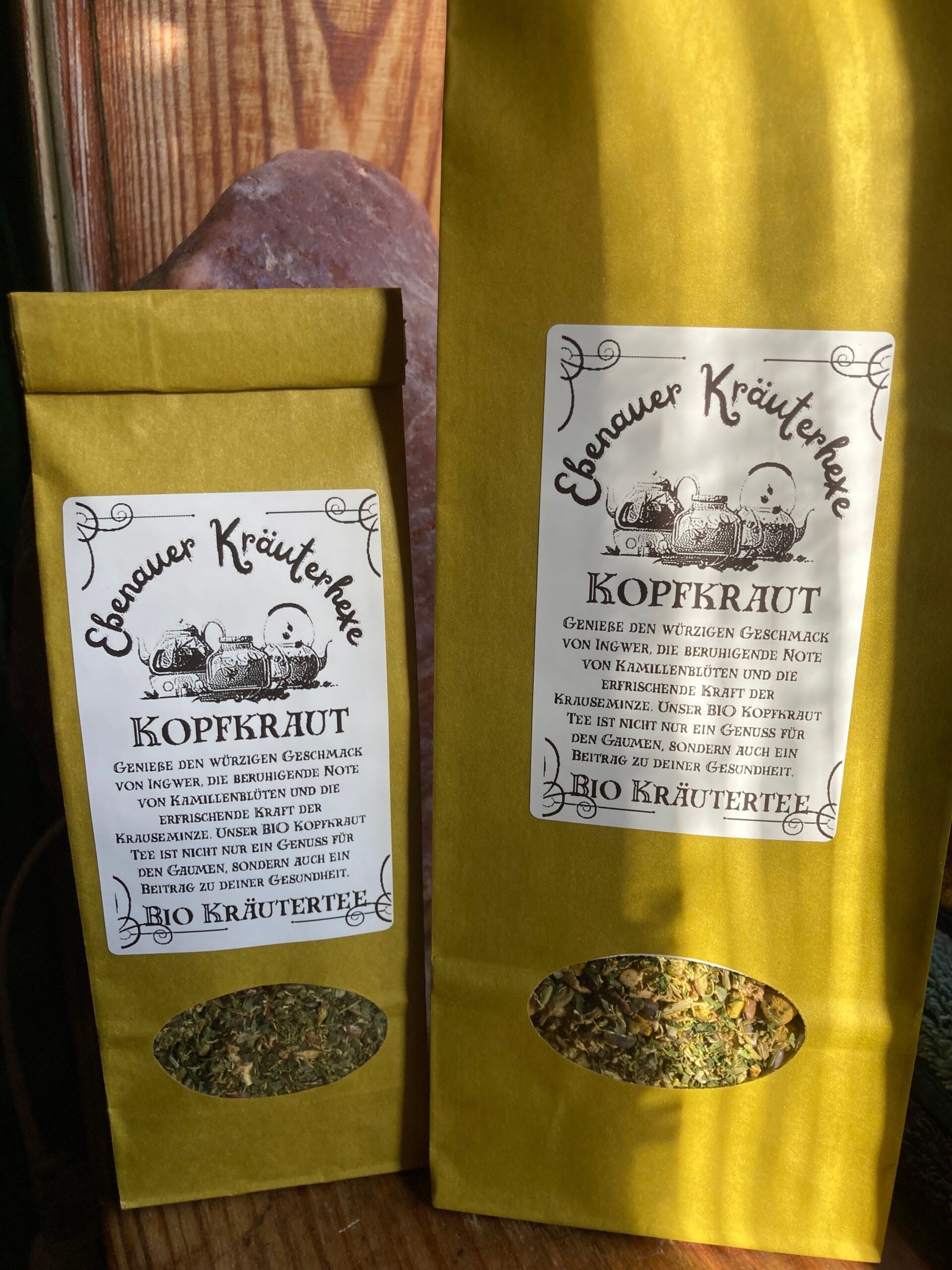 Unser Kopfkraut Tee ist 100% bio, was bedeutet, dass alle Zutaten nach strengen ökologischen Standards angebaut und verarbeitet werden. Gönnen Sie sich diese exquisite Teemischung und genießen Sie eine Auszeit für Körper und Geist!