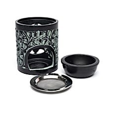 Entdecken Sie unsere Duftlampe aus hochwertigem, schwarz poliertem Speckstein in schwerer Ausführung. Diese vielseitige Duftlampe wird mit einem praktischen Sieb und einer Schale geliefert, sodass sie sowohl als Räuchergefäß als auch als Duftlampe fungiert.